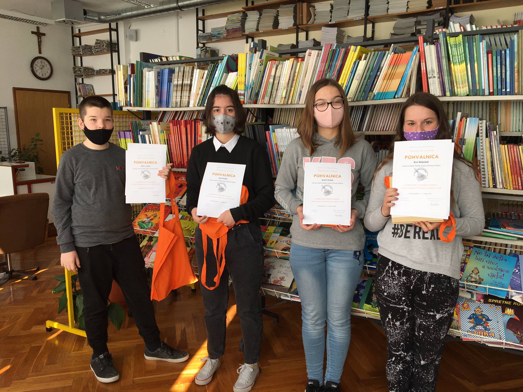 Projekt se sastoji od dvije kategorije: kviza znanja i izrade kreativnog uratka. U kvizu znanja učenici odgovaraju na pitanja iz zadanih knjiga. Školsku ekipu koja predstavlja školu na županijskom (i u slučaju plasmana, na nacionalnom natjecanju) čini troje učenika, najboljih na školskom natjecanju. Sva su je natjecanja odvijala online i to u našoj informatičkoj učionici pod budnim okom komisije za provedbu natjecanja. Ove godine na županijsko natjecanje plasirali su se Petar iz 6.a, Jelena i Ema iz 7.b (mentorica Ines Krušelj-Vidas). Učenici mogu na zadanu temu izraditi i kreativni uradak, a on je individualni rad jednog učenika. Lana iz 8.b izradila je svoj plakat (mentorica učiteljica Ivana Kranjčec).