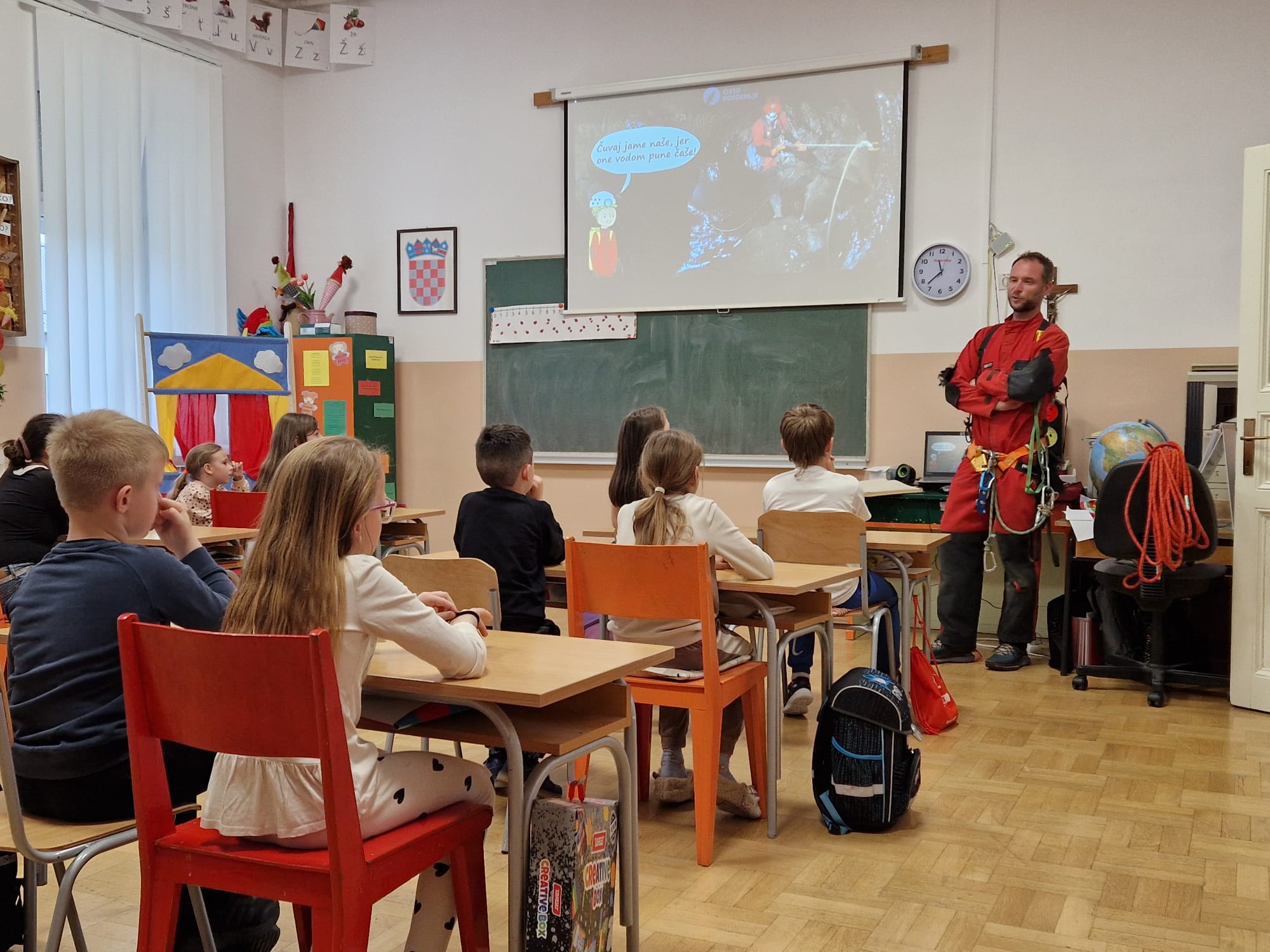 U srijedu, 24.04., u sklopu volonterskog projekta “Ambasadori Čistog podzemlja” koji provodi Zagrebački speleološki savez, održano je predavanje o čistom podzemlju za učenike 3. i 4. razreda. Iskusni speleolog educirao je učenike o važnosti krškog podzemlja, o tome tko ga i kako istražuje te o važnosti zaštite špilja i jama kao podzemnih rezervoara pitke vode. Predavanje je održano u punoj speleološkoj opremi. Također, demonstrirao je tehnike spuštanja i penjanja po špagi, što je učenicima bilo jako zanimljivo.